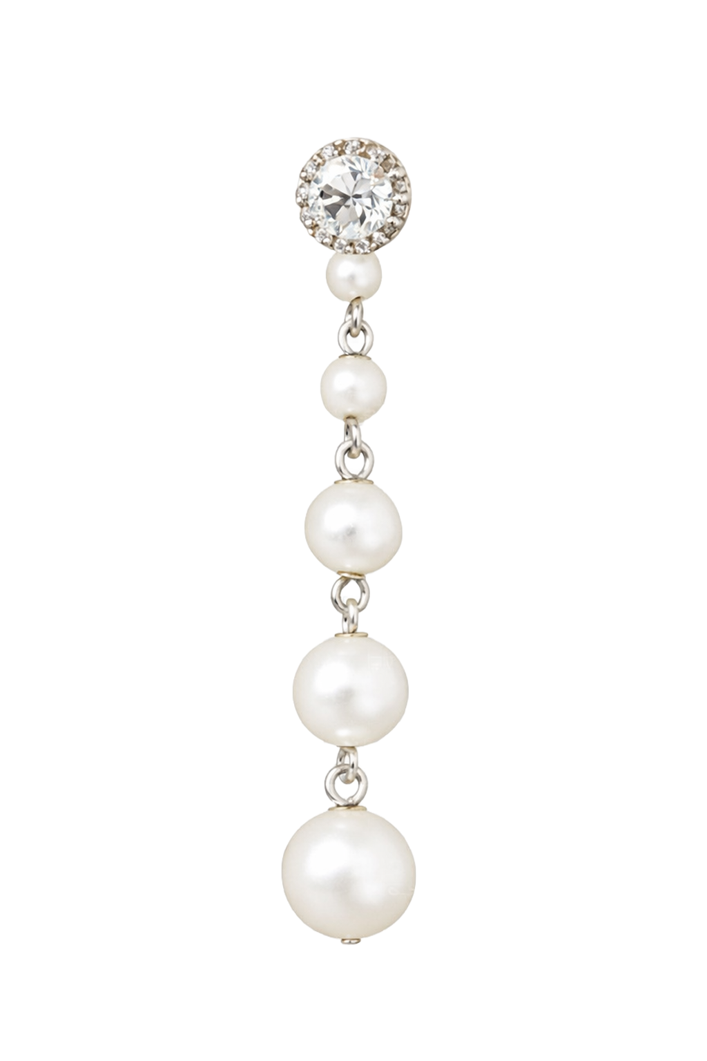 Un diseño elegante y atemporal que aporta sofisticación a cualquier look. Este pendiente presenta una delicada caída de perlas luminosas, suspendidas desde un brillante cristal superior que capta la luz con sutileza.